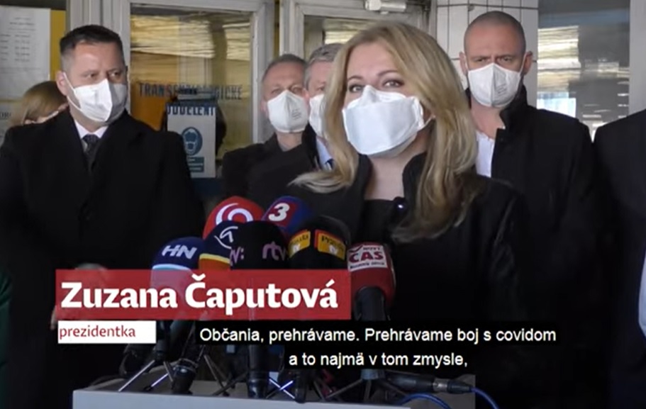 A járvány kezdete óta a SARS-CoV-2 nevű vírus 631 738 embert fertőzött meg az országban, és az általa okozott Covid-19-betegség következtében 14 056-an haltak meg. Zuzana Caputová államfő érzelemtől túlfűtött szokatlan hangnemben kedden országos kijárási tilalom haladéktalan bevezetését sürgette, hangsúlyozva, hogy az ország vesztésre áll a Covid-19-cel szemben, és a túlterhelt egészségügyi dolgozók érdekében szükség van karanténra. A kórházban ápolt koronavírusos fertőzöttek száma elérte a 3200-at, megközelítve a járvány legutóbbi tetőzésekor regisztrált mintegy 3800-at.