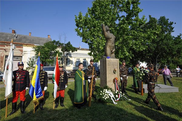 Koszorúzás Émile Guillaume Magyar fájdalom című szobránál a nemzeti összetartozás napján tartott megemlékezésen a debreceni Bem téren 2015. június 4-én. MTI Fotó: Czeglédi Zsolt