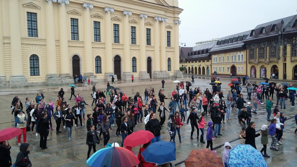 Az esős idő ellenére is voltak, akik táncra perdültek Debrecen főterén a tánc világnapján.