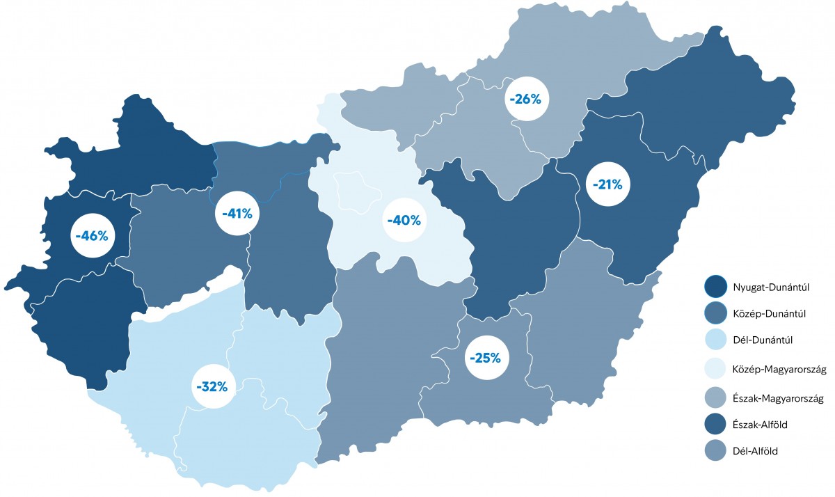 Az Intrum és a GKI új, félévente frissülő regionális fizetési jelentéséből pedig régiós szinten lehet adatokat kinyerni a válság okozta sokkról. Az indexből kiderült, hogy egyes régiókat a válság az átlagnál súlyosabban érintett. A legnagyobb mértékben egyértelműen a Nyugat-Dunántúlon élők pénzügyi helyzete romlott, a régióban a regionális fizetőképességi index értéke 2020 áprilisában 46 százalékkal csökkent az első negyedévhez képest. Hasonló a helyzet Közép-Magyarországon és Közép-Dunántúlon is. A központi régióban 40, nyugatabbra 41 százalékkal esett vissza a háztartások fizetőképessége.
