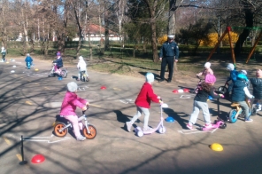 A Debreceni Rendőrkapitányság Közlekedésrendészeti Osztályának előadói tartottak 2017. március 28-án balesetmegelőzési előadást egy Nagyerdei óvodában. A rendőrök a jó idő beköszöntével játékos feladatokon keresztül hívták fel a figyelmét a gyermekeknek a megfelelő gyalogos és kerékpáros közlekedésre. Az egyenruhások a fontosabb közlekedési jelzőtáblák jelentéseinek ismertetését követően egy akadály pályát is felállítottak, amit kerékpárral kellett teljesíteniük az óvodásoknak.
