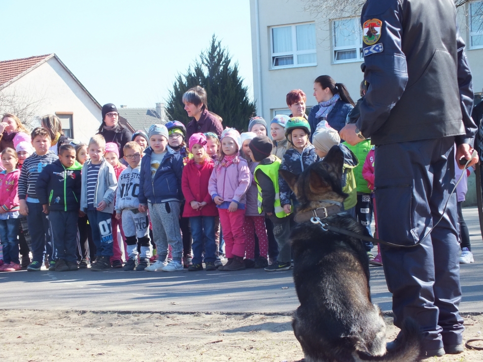 Mező Zoltán r. főtörzsőrmester és nyomkövető kutyája Palkó, valamint Keresztesi Csaba és Ulti a kábítószer-kereső kutya is megmutatta tudását az ovisoknak. Karacs Attila r. alezredes, Móré Gyula r. főtörzsőrmester és Biriki István r. főtörzsőrmester pedig a rendőri felszerelésekkel, gépjárművekkel ismertette meg a gyerekeket.