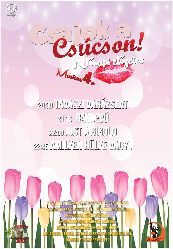 Beköszöntött a tavasz, közeleg a nőnap, ezért ezen a héten hölgyvendégeknek kedveskednek az Aquaticum Szaunavilágban.
