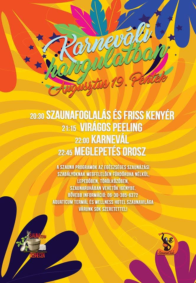 Extra szaunaestet tartanak pénteken, gőzös és relax programokkal kiegészítve a jól bevált finn szaunás kényeztetésekkel a debreceni Aquaticumban.