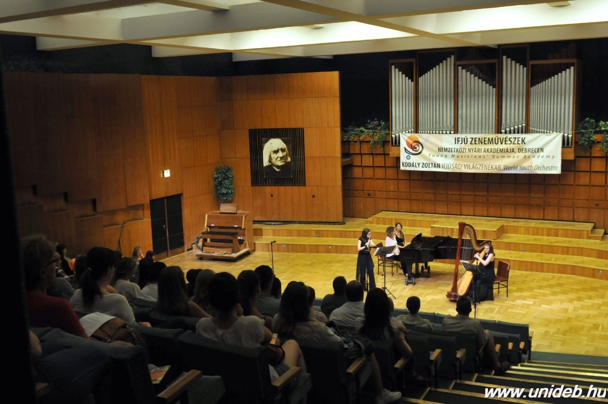 Huszonhat ország több mint kétszáz hallgatója vesz részt a július 25-ig tartó Ifjú Zeneművészek Nemzetközi Nyári Akadémiáján, melynek programját esténként az egész világon ismert és elismert művészek fellépései színesítik. – A kurzust tartó művésztanárok és osztályaik növendékei szívesen és nagy kedvvel koncerteznek, így már nulladik napot is be kellett vezetnünk a koncertnaptárba, sőt idén olyan esténk is lesz, amikor két hangversenyt kínálunk a közönségnek – fogalmazott Váradi Judit művészeti igazgató a július 15-én rendezett 0. napi koncert megnyitásakor. Összesen tizenegy koncertet kínál ingyenesen a közönségnek a Debreceni Egyetem Zeneművészeti Kara.