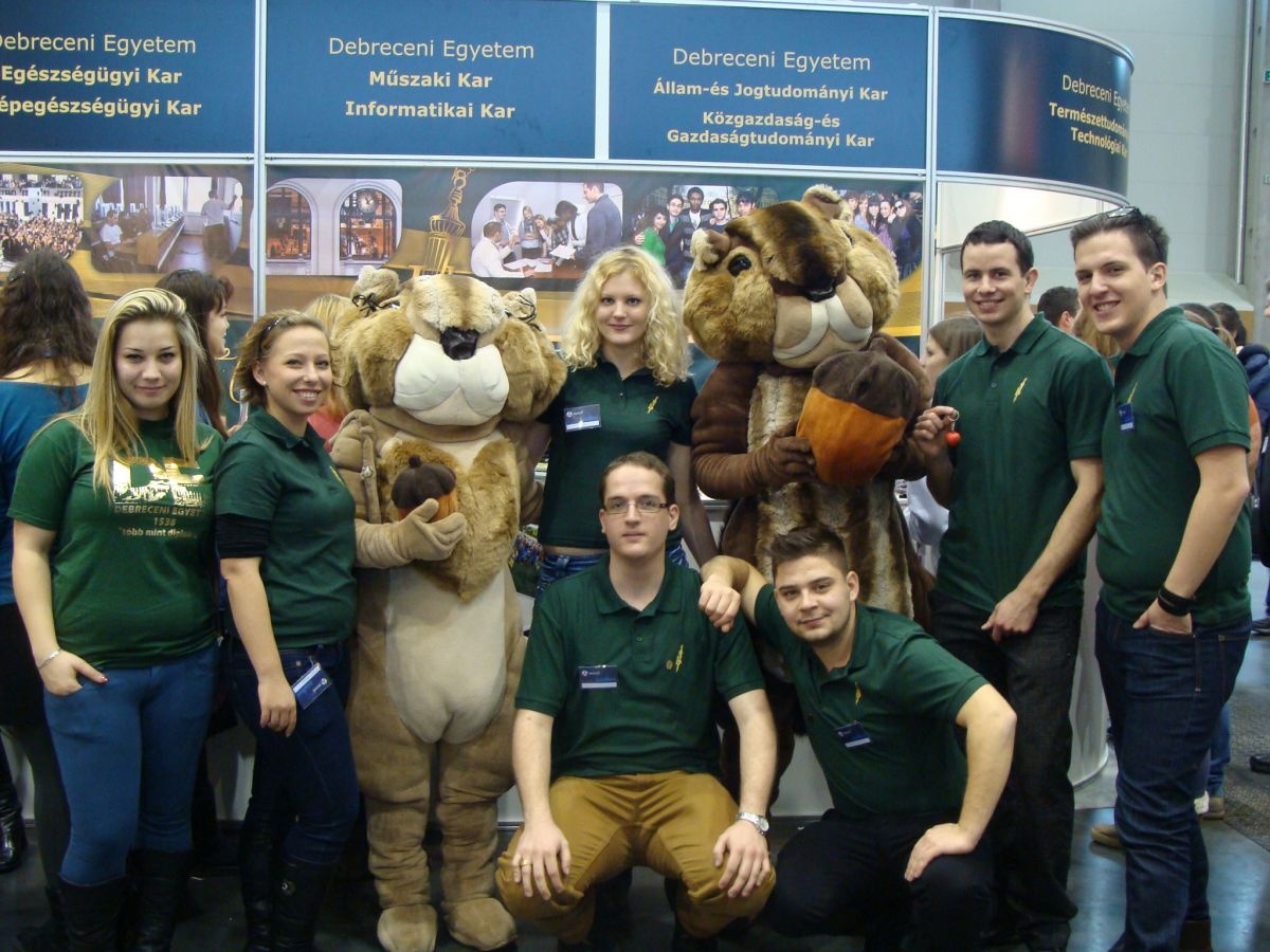 – A Debreceni Egyetem idén is 36 önálló „sziget” standon mutatja be 14 karának felvételi kínálatát. A 35 fős stáb – jórészt a Hallgatói Önkormányzat (HÖK) képviselői – az érdeklődők valamennyi kérdésére válaszolnak, ismertetve az intézmény oktatási, képzési, kulturális, kollégiumi és szabadidős lehetőségeit. Természetesen készülünk meglepetésekkel, ajándéktárgyakkal, szóróanyagokkal, és velünk lesz egyetem népszerű kabalafigurája eDE is – tudta meg az unideb.hu portál Molnár Dánieltől, a DEHÖK kabinetfőnökétől.
