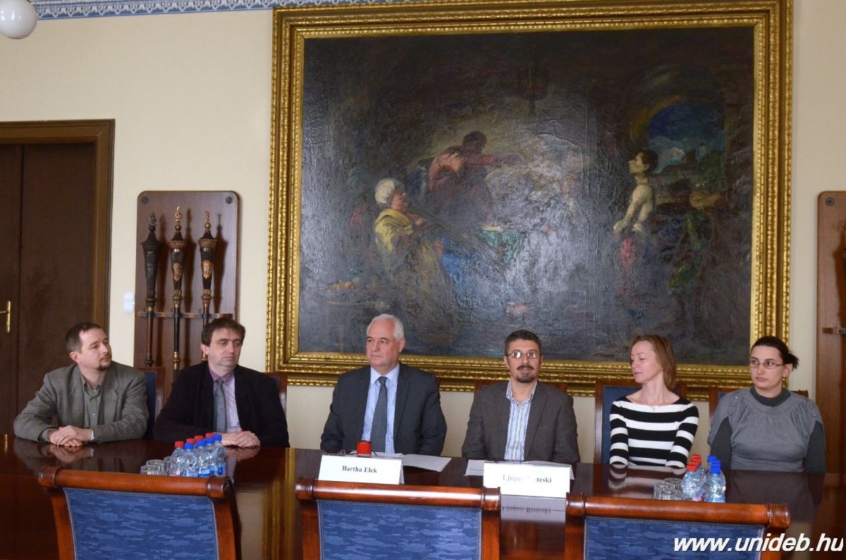 A macedón Ss. Cyril & Methodius Egyetem néprajzi és antropológiai intézetének professzora tett látogatást pénteken a Debreceni Egyetemen, hogy tovább mélyítse a két intézmény közötti – főként doktori és tudományos területeket magában foglaló – együttműködést. Ljupco Risteski előadást tartott a Néprajzi Tanszék PhD-hallgatóinak az általa végzett néprajz és mitológiai kutatásairól, majd Bartha Elek rektorhelyettessel írt alá megállapodást.