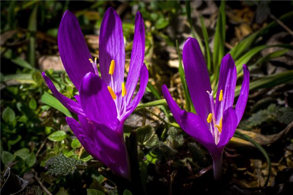 Virágzó egyhajúvirágok (Bulbocodium vernum) a Hajdúsági Tájvédelmi Körzet területén, Újléta és Létavértes között 2016. február 29-én. A hazánkban fokozottan védett növény általában a fagyok megszűnése után kezd virágozni, a tavasz első hírnökeként. MTI Fotó: Czeglédi Zsolt