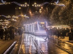 Miután fényárba borult a Kossuth tér, megérkezett a Nagytemplomhoz a két fényvillamos. A DKV speciális járatai mára szintén emblematikus elemei a debreceni ünnepvárásnak és a karácsonyi készülődésnek. A hűvös, esős időjárás ellenére most is sokan nézték meg a karácsonyi lámpagyújtást. A fények után a zenéé volt a főszerep, Adventi találkozások a Nagytemplomban címmel zenés-énekes ajándékműsor vette kezdetét, melynek fellépői között Radics Gigit, a Vox Iuventutis Gyermekkart, Mercs Jánost, a Csokonai Színház kórusát, és a Nagytemplomi Gyülekezet zenekarát köszönthette a közönség.