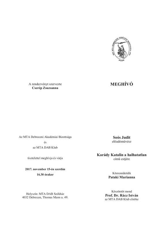 Karády Katalin-est lesz a DAB székházban Kultúra november 13, 2017november 14, 2017Szabolcs SzilágyiSzóljon hozzá a Karády Katalin-est lesz a DAB székházban bejegyzéshez Házigazda: Soós Judit, előadóművész.