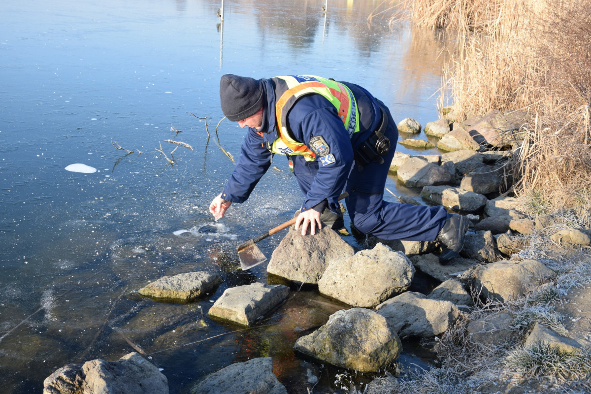Tájékoztatásuk szerint a Tiszai Vízirendészeti Rendőrkapitányság munkatársainak mérése alapján a Holt-Tisza jege jelenleg két-három centiméter vastag.
