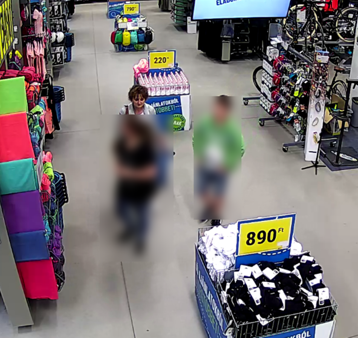 A nő egy feltehetően gyerekkorú lánnyal és fiúval tartózkodott az üzletben. A nő 40 év körüli, körülbelül 165 centiméter magas, normál testalkatú, rövid barna hajú. A bűncselekmény elkövetésekor kék farmer halásznadrágot, fehér pólót és szürke kardigánt viselt, valamint egy barna színű női táska volt nála.