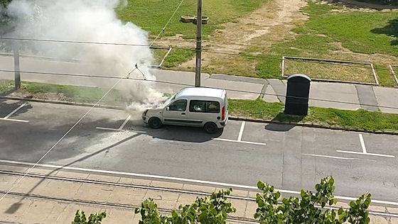 Egy személygépkocsi motortere égett Debrecenben, a Petőfi téren. A debreceni hivatásos tűzoltók egy vízsugárral eloltották a lángokat.Kép: Debrecenben Hallottam