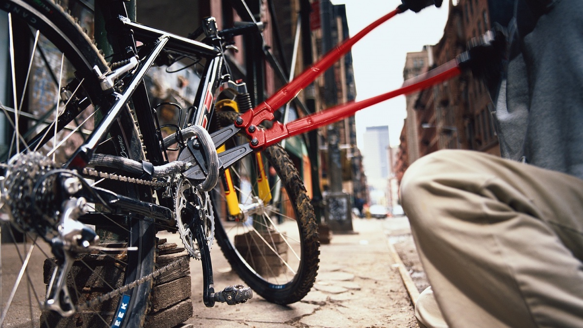 Az egyik fiatal a környéket figyelte, míg társa egy közúti jelzőtáblához rögzített kerékpár lakatját el akarta vágni.