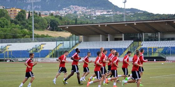 A csapat fél kettőkor megebédelt, majd pihent egy kicsit. A társaság 18.20-kor indult az edzésre, amelyet 19 órai kezdettel tartott meg Kondás Elemér és stábja a mérkőzésnek is helyet adó San Marinó-i Olimpiai Stadionban.